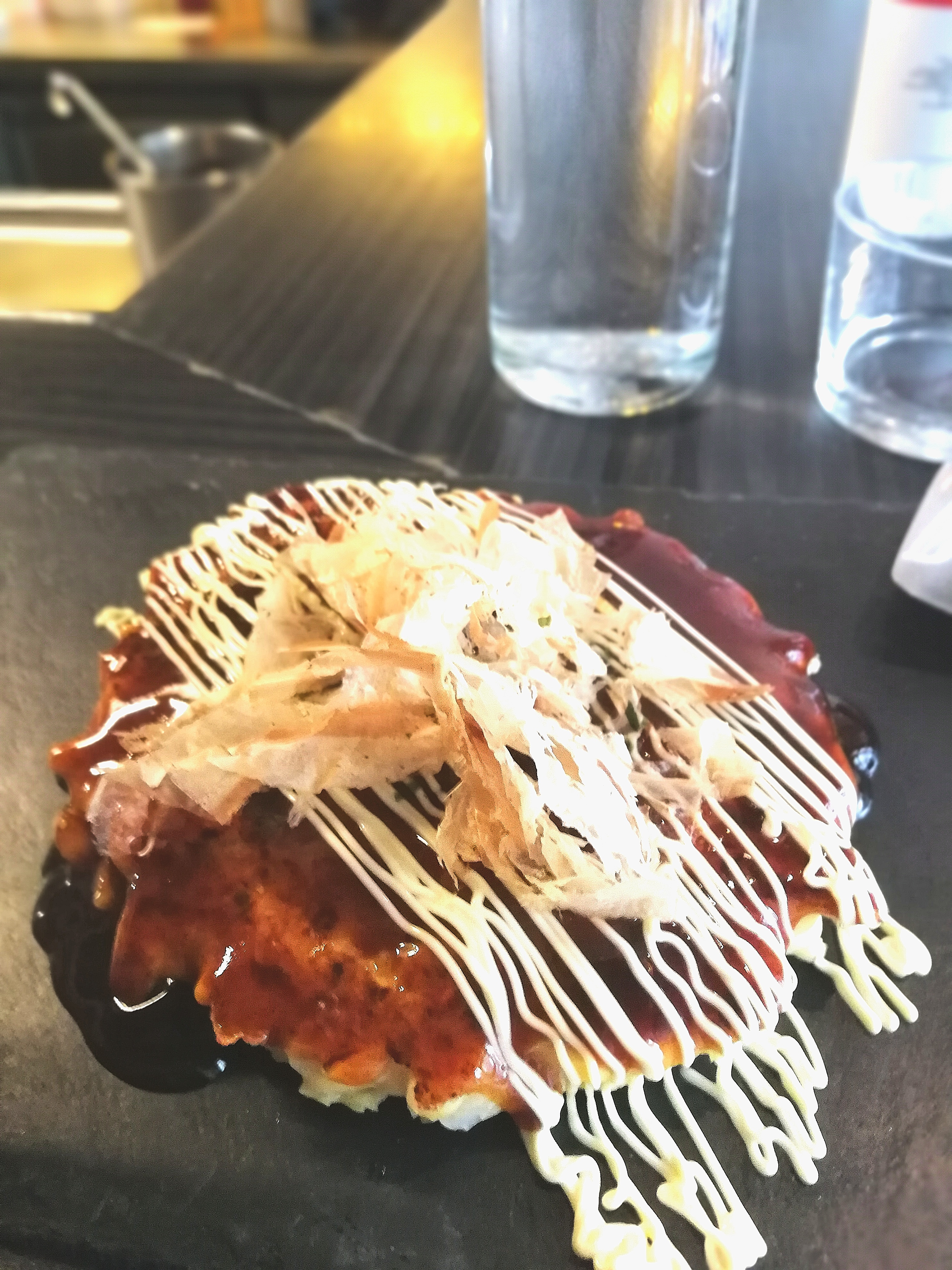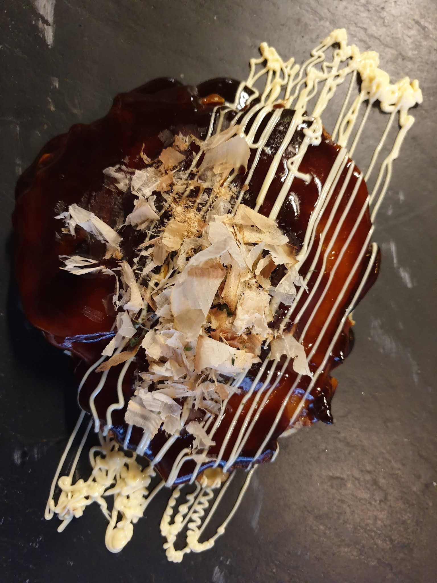 Incroyablement délicieux. Une première pour moi ces okonomiyaki ! Et certainement pas la dernière. Un régal pour les yeux, le goût et l'odorat.